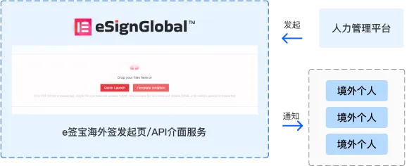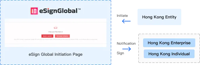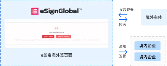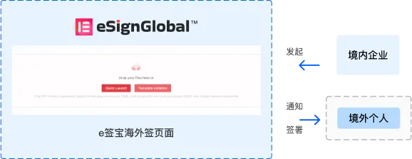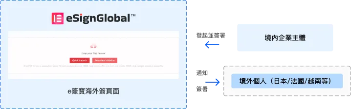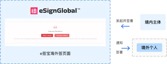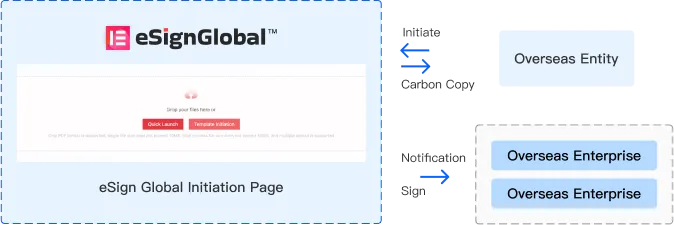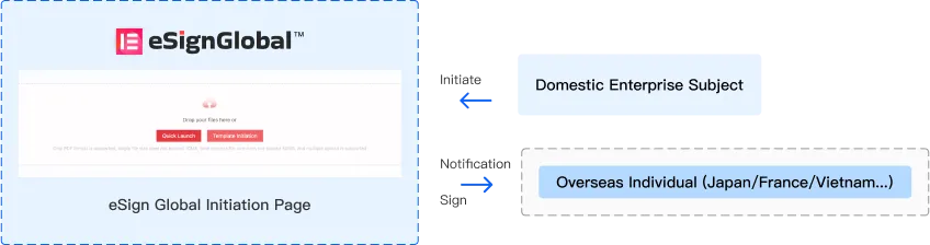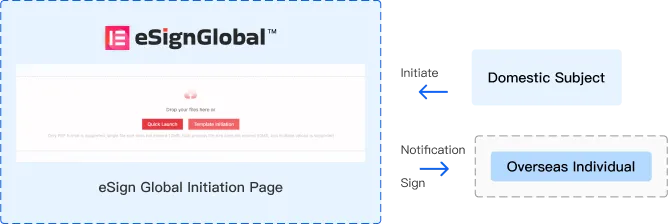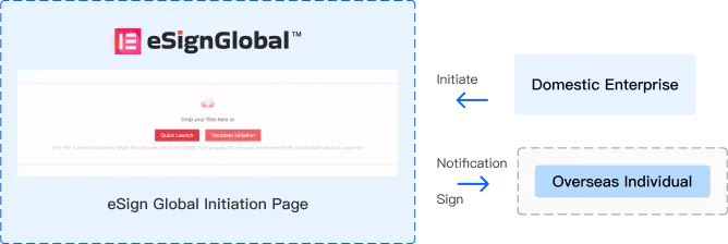 La entidad nacional del usuario inicia la firma del contrato y el correo electrónico personal en el extranjero recibe la notificación de firma