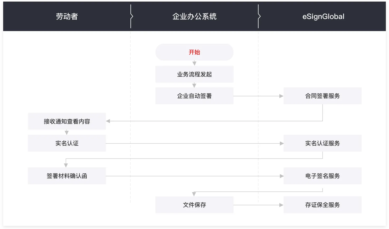 4. Após a assinatura do documento, o funcionário pode visualizar o contrato assinado no sistema de RH, e as informações de assinatura do contrato podem ser armazenadas nos serviços abertos eSignGlobal.