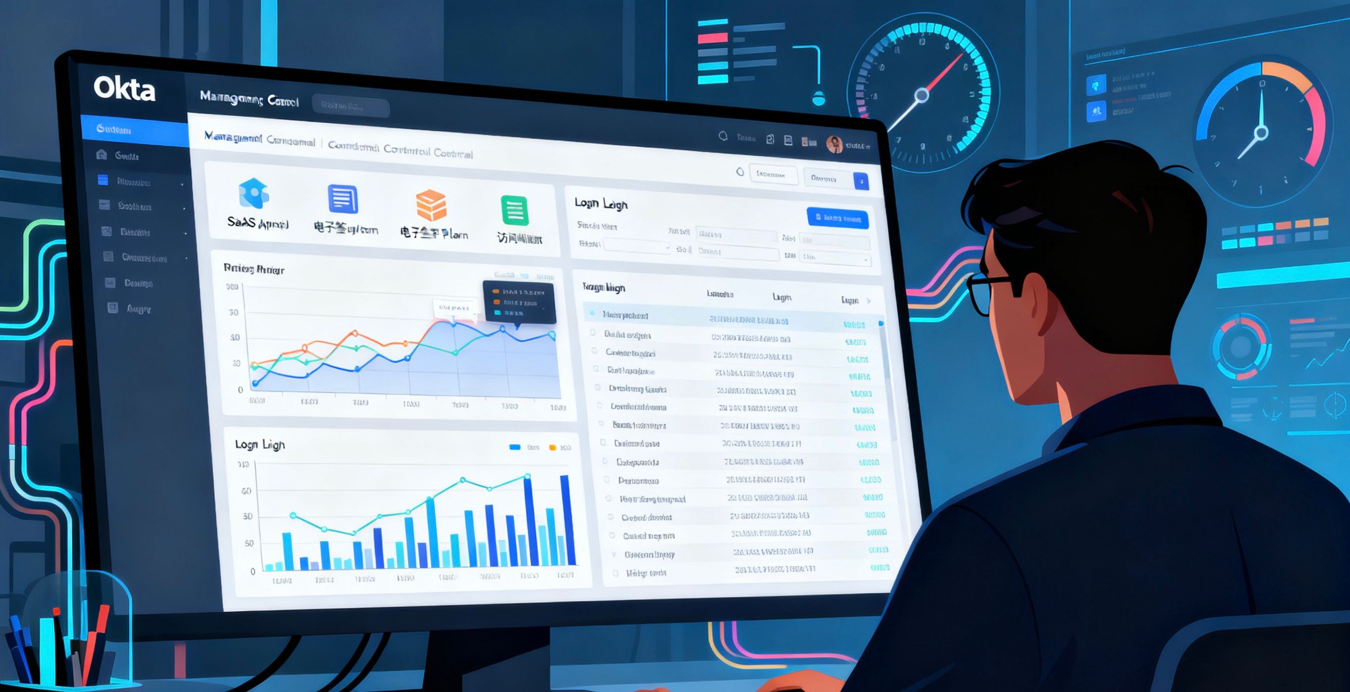 IT团队可以在Okta管理控制台中,统一监控和分析对所有集成的SaaS应用(包括本电子签名平台)的访问情况。详细的登录日志为安全审计提供坚实依据,实现对企业应用访问的全面可视化和集中管控。